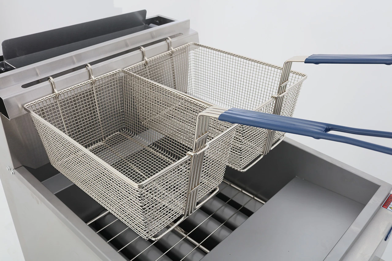 NICKEL PLATED BASKETS: This nickel plated fryer basket includes a wire mesh crumb screen. It also features a coated cool-to-touch handle to ensure that you never get burned when taking hot items out of the oil, even with heavy usage.