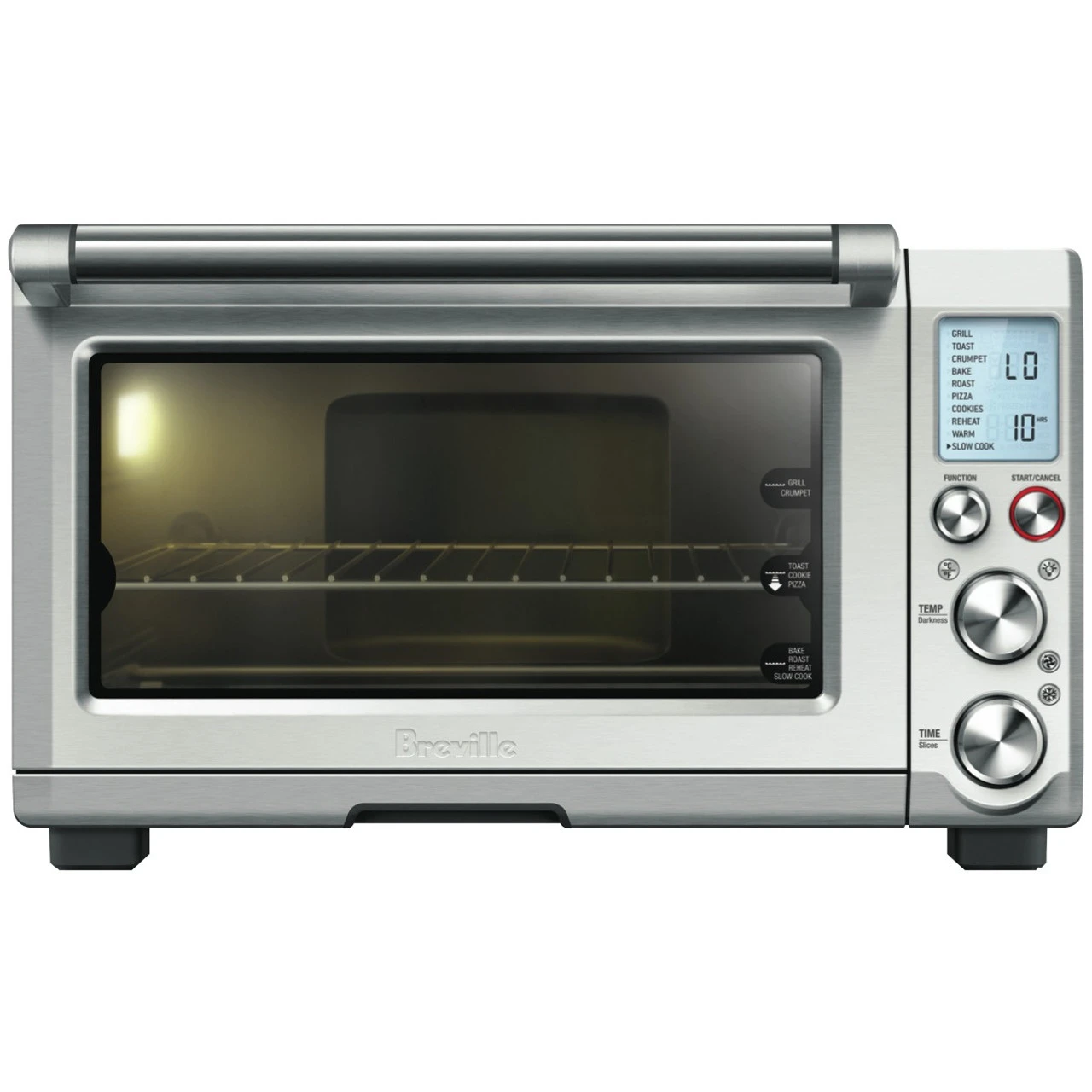 - LCD with 10 pre-set functions including slow cook, bake, broil, bagel, toast, cookies, roast, pizza, reheat and warm