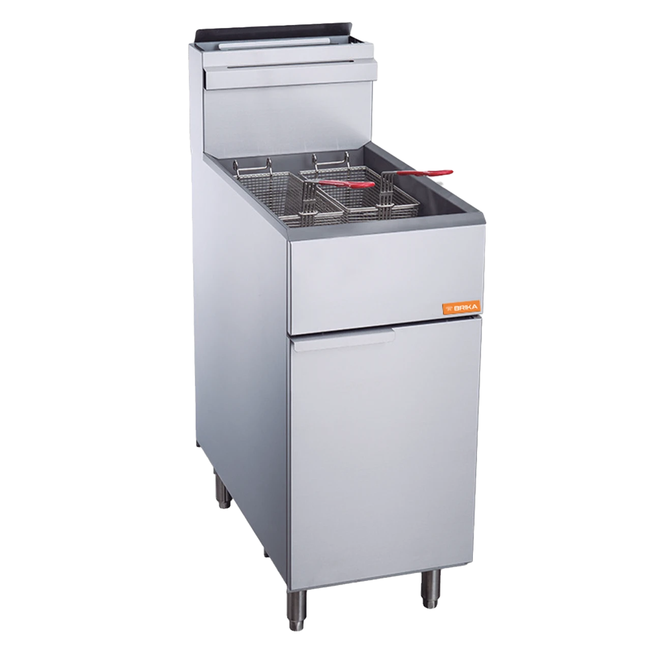 The Brika BFR-50-NAT Natural Gas Fryer is the perfect addition to any commercial kitchen, combining powerful performance, precise temperature control, and efficient design to meet the high demands of professional frying with ease.