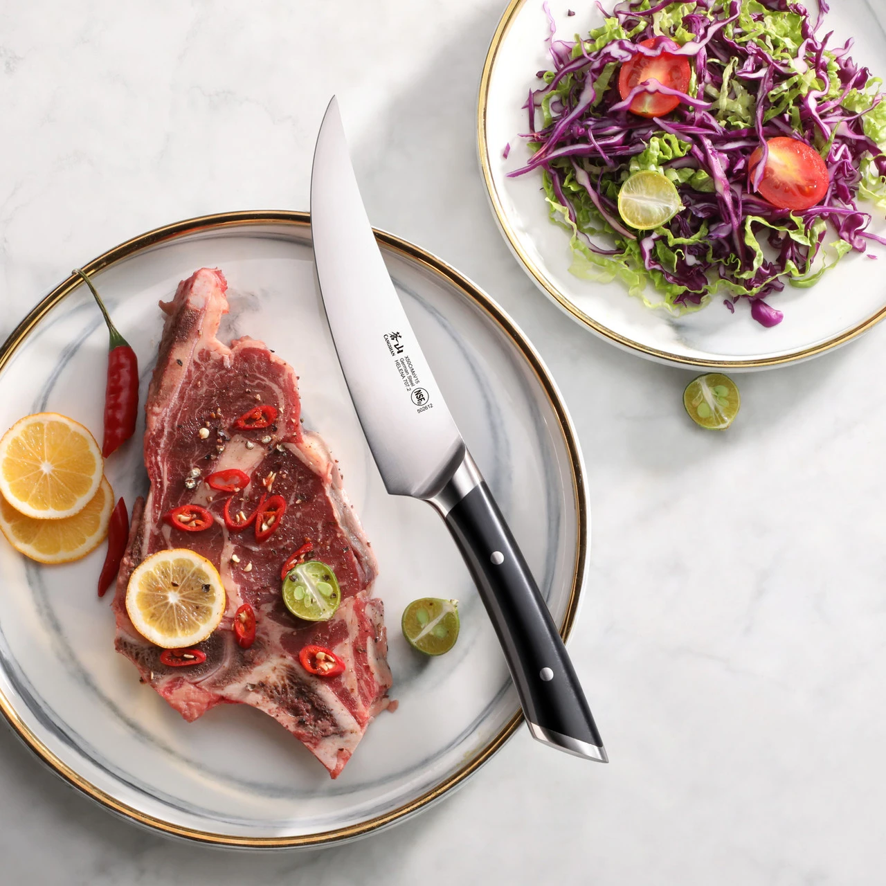 The Helena Series speaks to the purity of minimalism by focusing on the elemental beauty of forward-thinking aesthetics and practical functionality. The sleek and modern design has exceptional qualities that compliment and elevate the skills of the chef. We designed an ergonomic handle for an easy and comfortable grip. Our knives and accessories are well balanced, and seamlessly crafted allowing for heavy kitchen use and easy clean up.