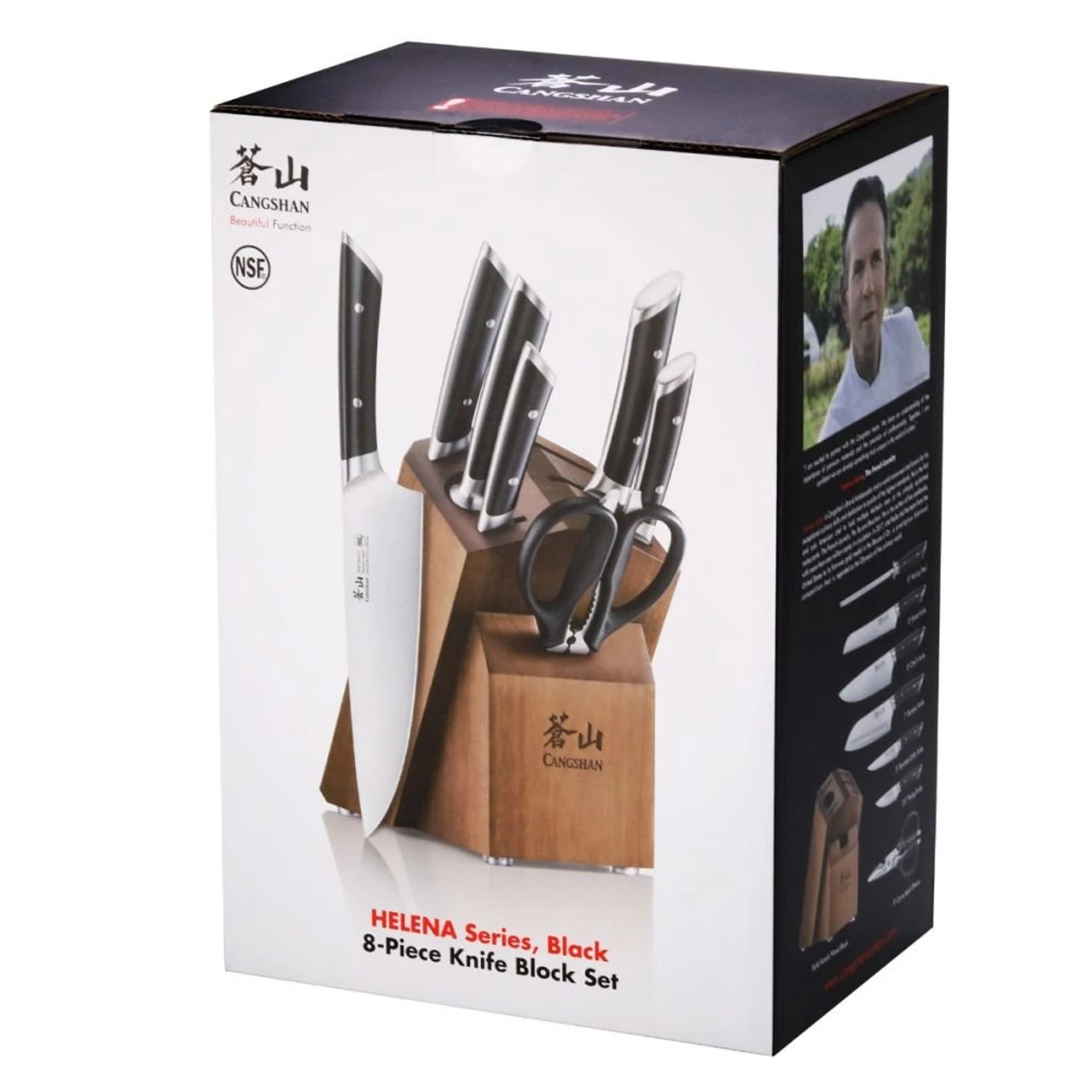 The HELENA Series is an elegantly minimalist interpretation of the modern kitchen knife. A slim, semi-bolster perfectly balances the knife’s full tang while complementing the sleek, smooth lines of the handle. Two stain-resistant steel rivets solidly fasten the ergonomic handle to the blade, providing a secure, comfortable grip. Every blade is forged from high-alloy German X50CrMoV15 steel and meticulously heat-treated, ensuring a razor-sharp edge with exceptional durability and edge retention.
