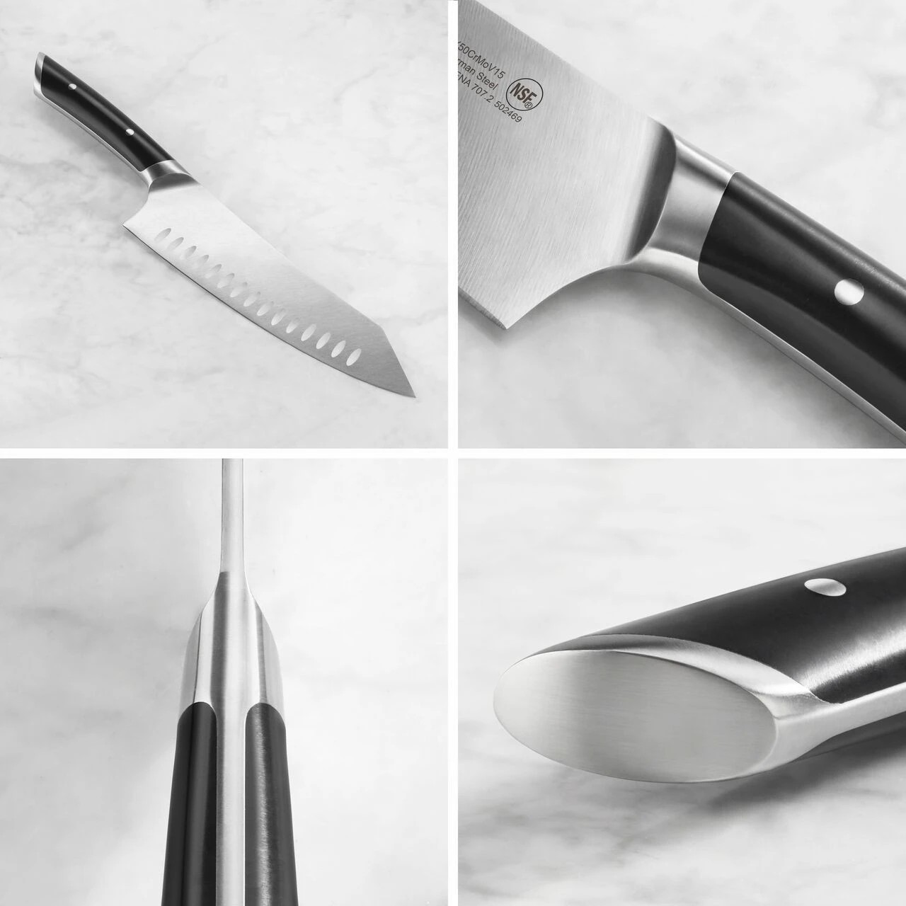 The Helena Series speaks to the purity of minimalism by focusing on the elemental beauty of forward-thinking aesthetics and practical functionality. The sleek and modern design has exceptional qualities that compliment and elevate the skills of the chef. We designed an ergonomic handle for an easy and comfortable grip. Our knives and accessories are well balanced, and seamlessly crafted allowing for heavy kitchen use and easy clean up.