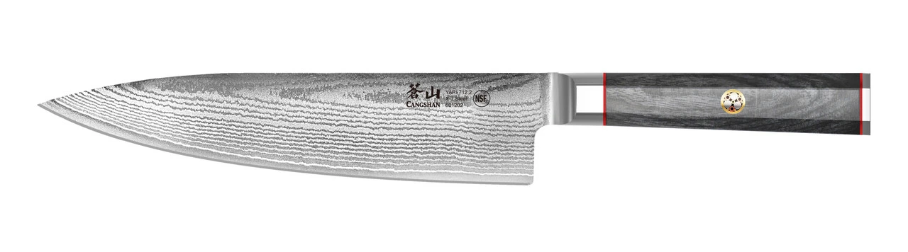 - Forged from 67 layers of Cangshan’s proprietary X-7 Damascus Steel.