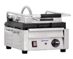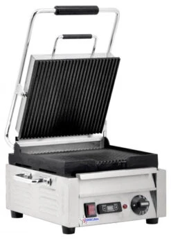 Omcan – 10″ X 11″ Single Panini Grill With Grooved Top And Bottom Grill Surface With Timer – 42910