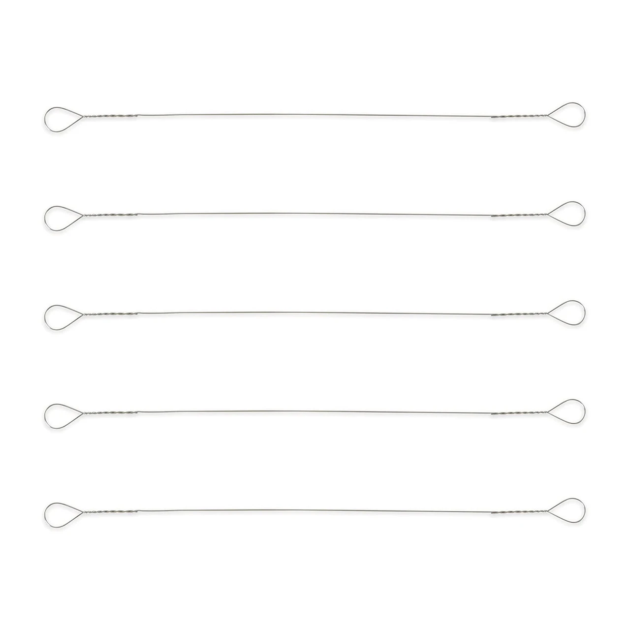 This set of five stainless steel cheese slicing wires are the perfect replacement set for all Fox Run Brands marble cheese slicing boards. Using a steel wire to slice cheese provides a precise cut for any kind of cheese. The wire glides through cheese for an easy and safe cut. While it is not dishwasher safe, the wires stay clean longer than cheese knives and are easy to wash when needed.