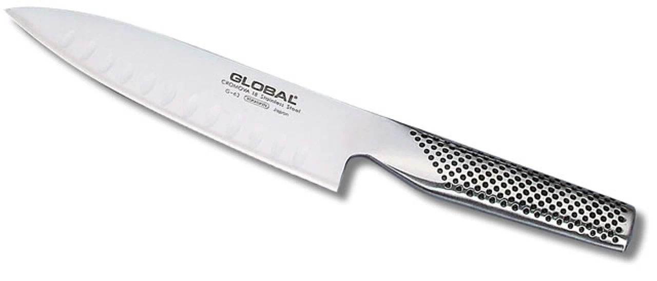 Fluted knives are great for preventing food from becoming stuck on the blade of your knife as you work. That is a familiar problem to anyone who has spent time in the kitchen, but it can be largely eliminated when flutes are added to the side of the blade. This fluted 6.3’’ Chef Knife from Global is a perfect model for those who like to work quickly and accurately when doing their prep work. As you would expect, this knife has all of the quality features of any other Global model, including CROMOVA steel and ice-tempering for hardness.