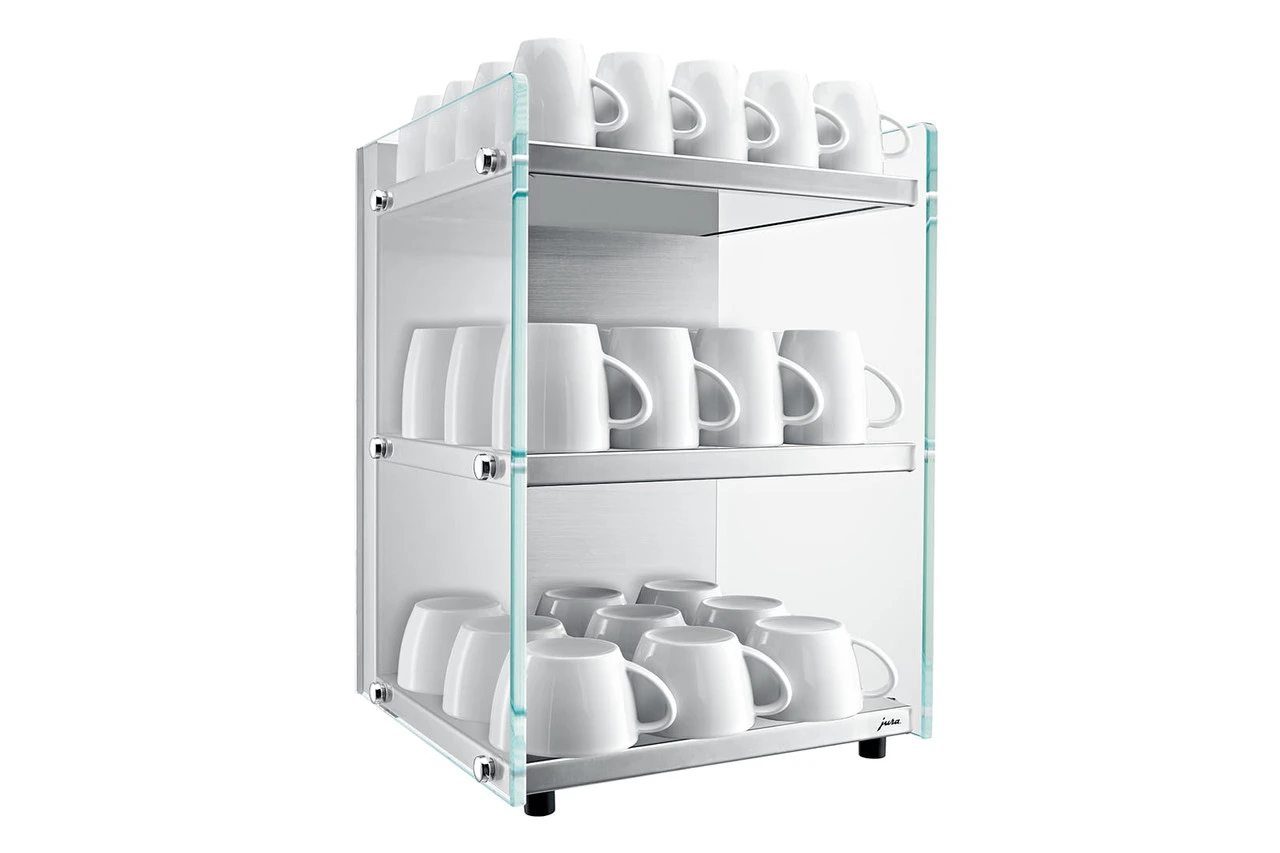 With its simple, clean lines, the stainless steel cup warmer featuring high-quality clear glass elements cuts an elegant figure alongside all GIGA Professional models and the X8/X6.