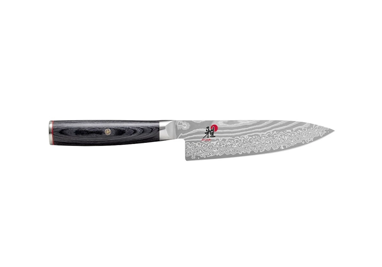 Designed to exacting standards, MIYABI® continues to strive for perfection with the new MIYABI® 5000FCD Kaizen Collection. “Kaizen” – Japanese for “improvement” or “change for the better” is a way of life. This series combines the latest technology with sleek, modern lines and centuries of knife-making artistry. Forged 49 layer construction with an FC61 super steel core protected by 48 alternating layers of stainless steel ground to expose a unique Damascus design and wavy katana edge. The new ergonomically shaped black Pakka wood handle features a striking mosaic pin, red decorative ring and end-cap with logo. Handcrafted in Seki, Japan.