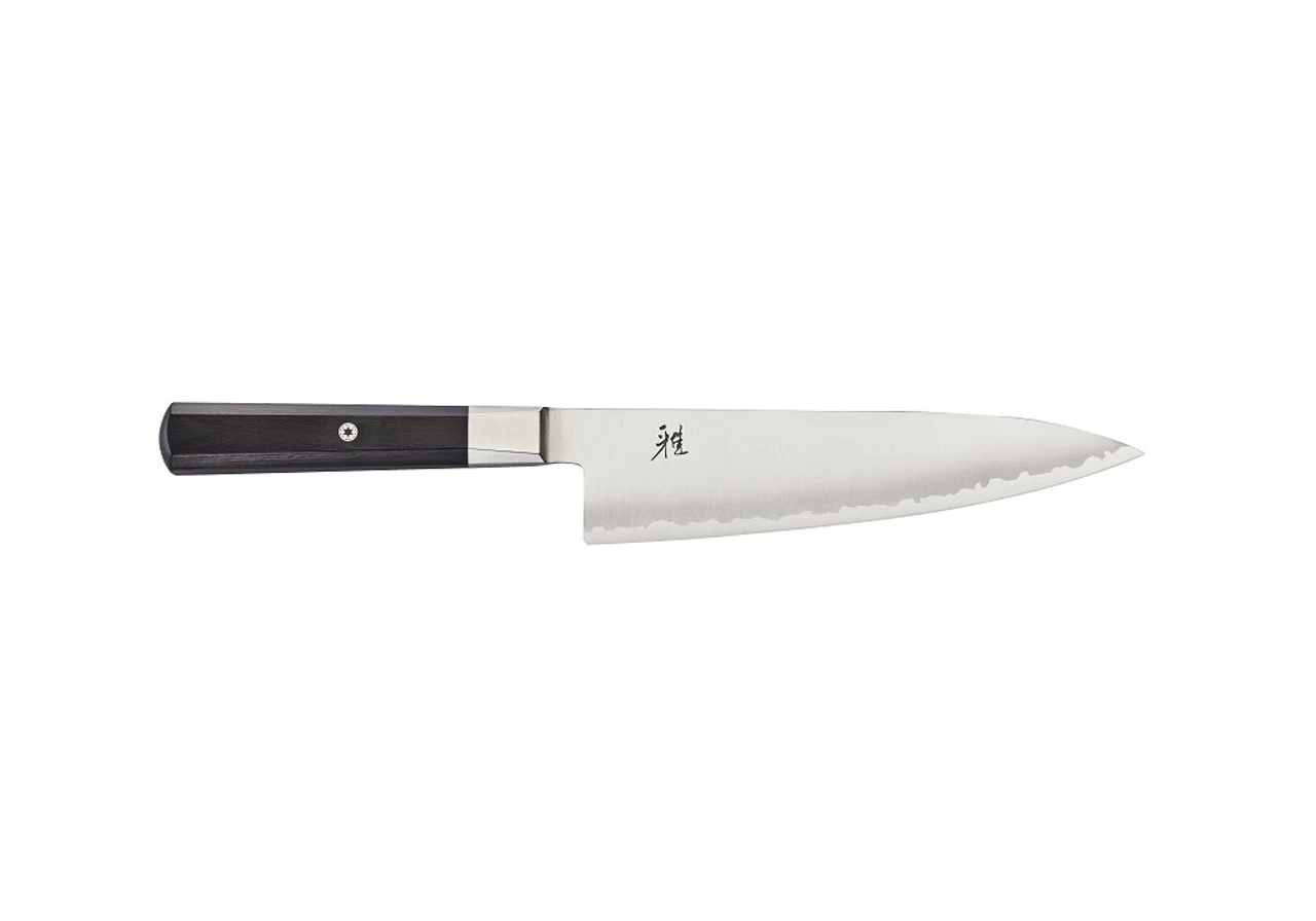 The new KOH series is MIYABI’s new series, accessible to those new to Japanese cutlery. The KOH series offers a strikingly modern appearance with a black pakka-wood handle and a sharp design. Features a FC61 super steel blade accented by an engraved MIYABI logo and a comfortable octagonal handle design accented with a stylish mosaic pin. Handcrafted in Seki, Japan.
