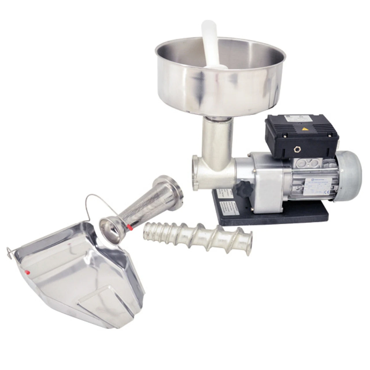 Omcan’s tomato squeezer enables the extraction of large quantities of tomato puree, separating it from seeds and skin. With its high power 0.40 HP motor, the TS-IT-0150 is ideal for those who require performance for medium to large production. The hopper, collector, and base are stainless steel;the worm and body are cast iron with double hot tinning, making this model a breeze to clean and sturdy to last during continuous usage. This model is also easy to disassemble, adding more effectiveness when cleaning. Made in Italy. Conforms to CSA standards.