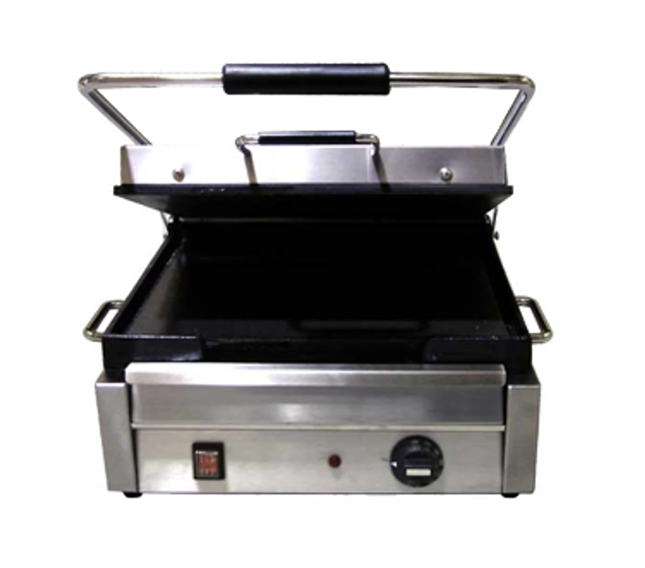 The grill is ideal for panini, foccacia, and pita sandwiches. It has a stainless steel body with cast iron grilling surfaces for easy cleaning. This configuration is ideals for even and complete contact for your food such as grilled cheese sandwiches, quesadillas, and hamburgers.