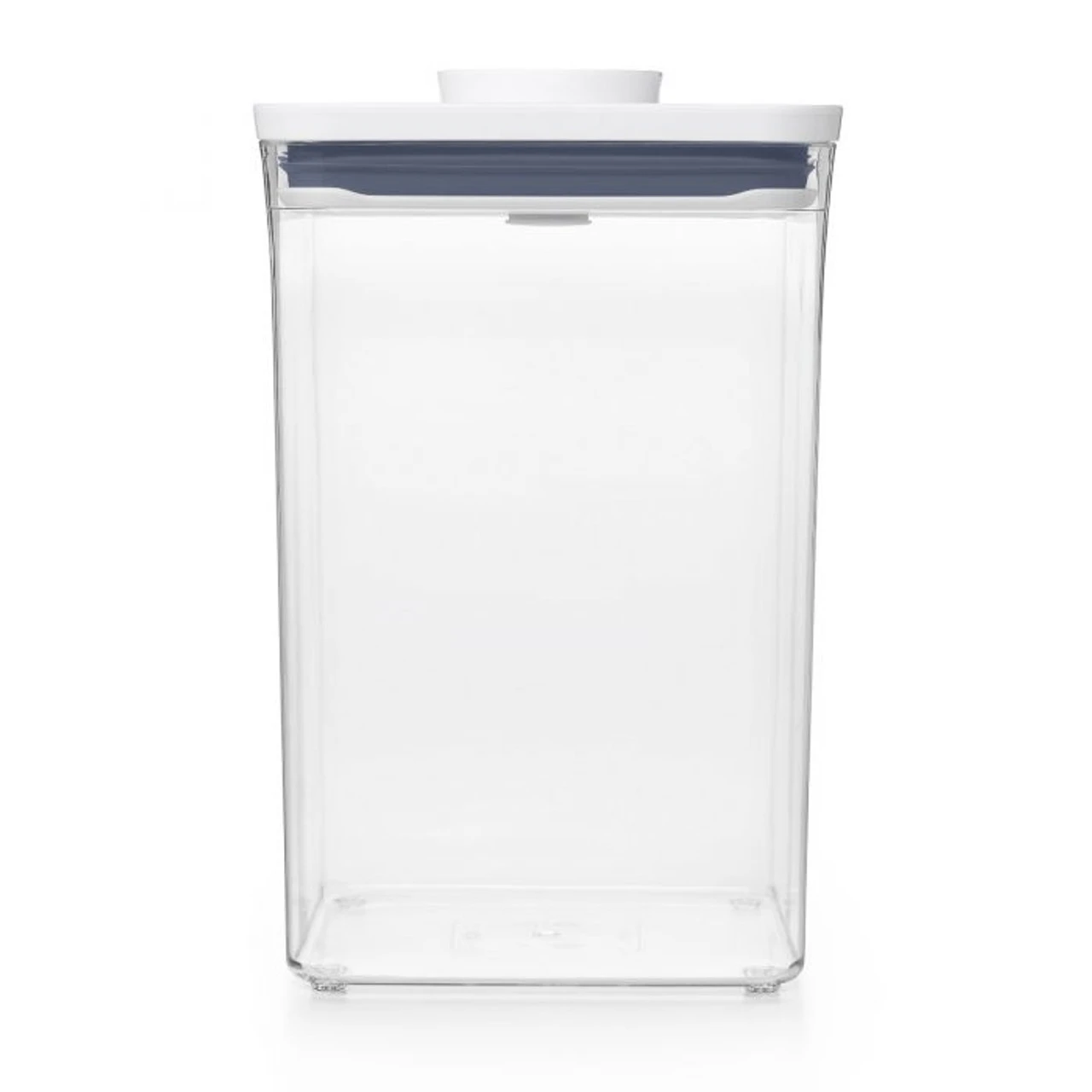 Big Square Medium Container, 4.2L. Ideal size for a 5lb bag of flour or sugar. Get an airtight seal with the press of a button. Accessories attachment on base of each lid allows to store scoops, levelers and more. Containers are stackable for optimal countertop and pantry organization. Container corners allow for easy pouring. Pop-up button serves as handle to lift off lid.