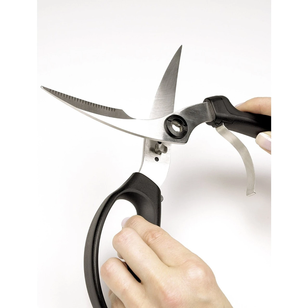 OXO Good Grips Poultry Shears feature the perfect balance of professional quality cutting and soft, comfortable grips. The sharp stainless steel blades are ideal for trimming and cutting poultry, and the blades are curved and tapered to access hard to reach places.