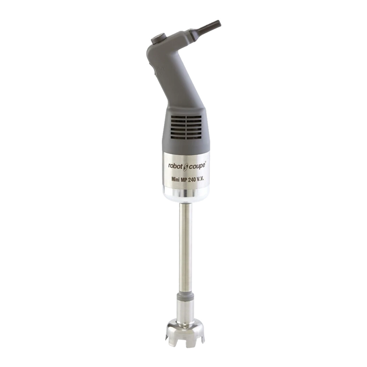 This blender includes a stainless steel bell, blade, and shaft, as well as an emulsifying disc, all of which may be removed for easy cleaning. The Robot Coupe MMP 24 0VV mini requires a 120V electrical connection for operation.