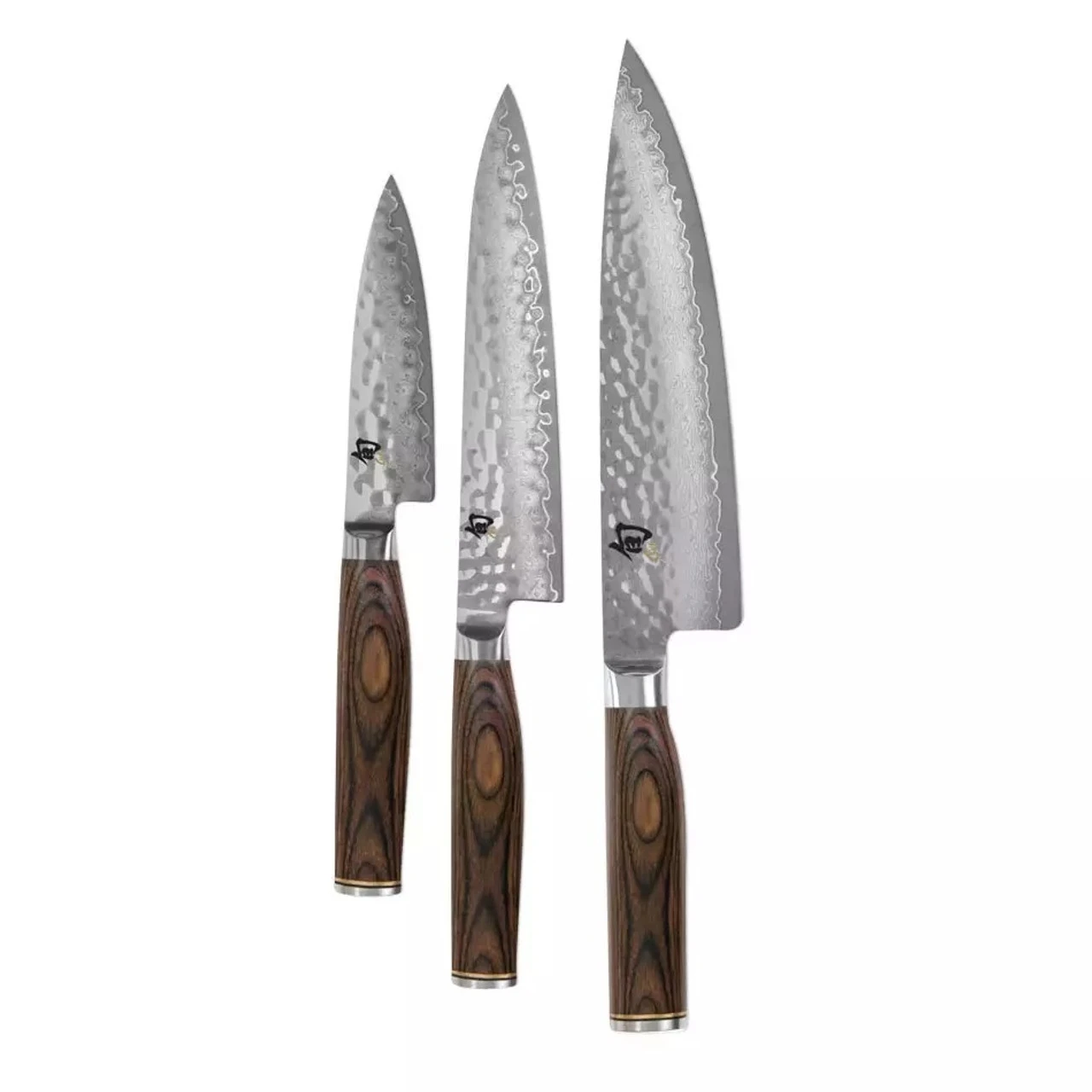 There is a hammered finish to make for a cleaner cut through meats and veggies, and the pakkawood handles feel great in your hand. Damascus steel is used to form the blades of these knives, and they look as great as they perform on the cutting board. Pick up your set today!