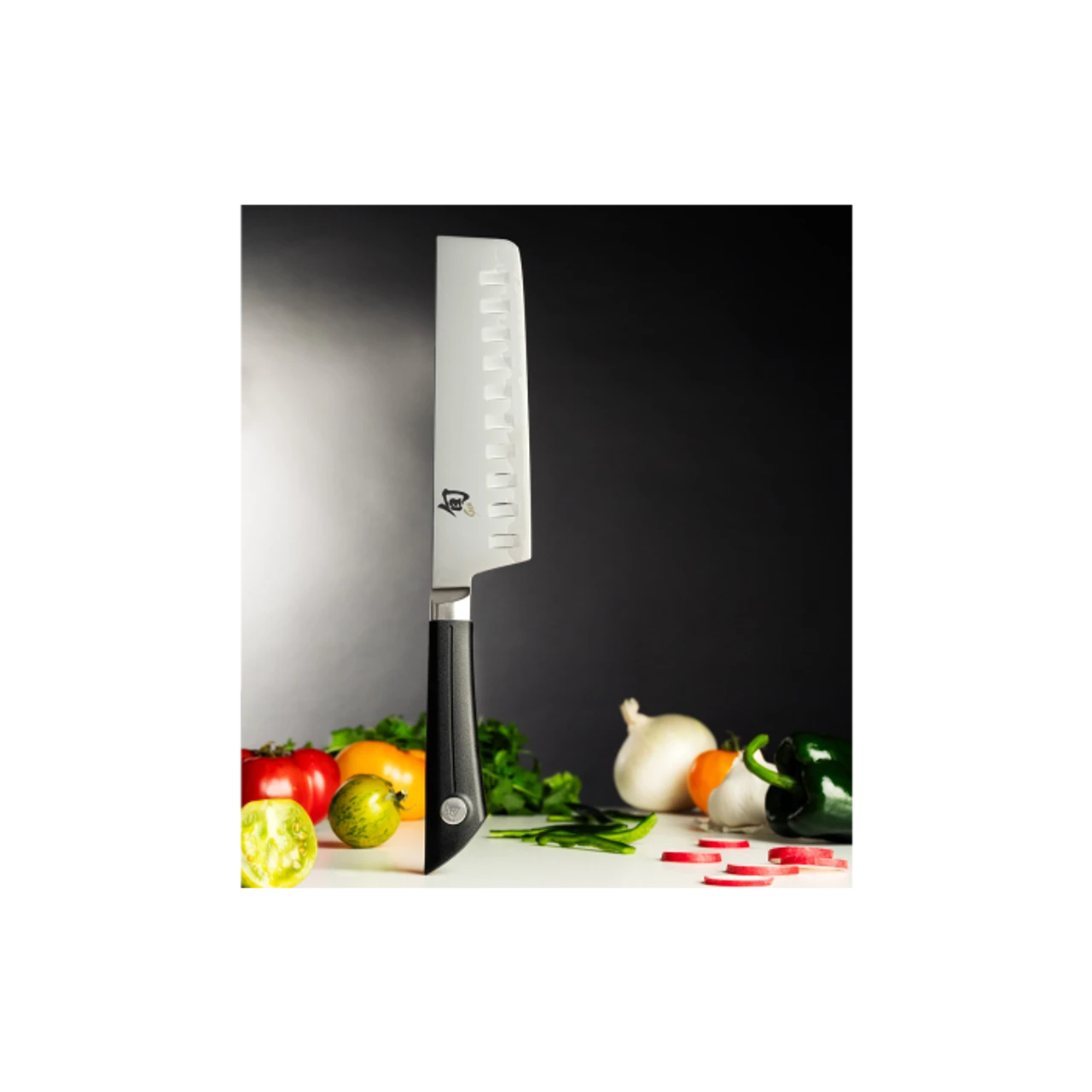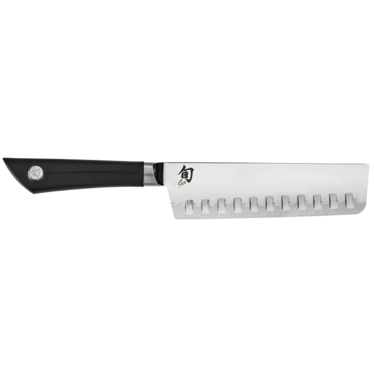 A nakiri is a Japanese-style vegetable knife. Once you get the Shun Sora Hollow Ground Nakiri in your hands, you will see why both professional chefs and good cooks around the world choose this beautiful and extremely useful tool whenever they have fruits or vegetables to prepare. With its straight blade, edge, and spine, the nakiri is used with a simple push cut. You will love the clean, swift work it makes of vegetables of all kinds. For daily salad preparation or slicing vegetables for stir-fry, it cannot be beat. Finely dicing onions is fast, easy, and with the Shun Sora Hollow Ground Nakiri’s blunt end, safer, too. The hollow-ground indentations on the side of the blade create small air pockets that reduce friction when cutting, making it easier to glide through each cut.