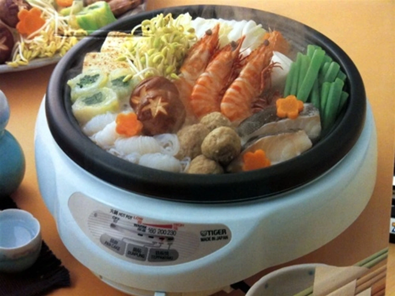 The electric skillet CPK-D13U from Tiger comes with 2 types of pans (deep pan and BBQ plate) for a range of cooking styles. The 2.4″ deep pan and the 1.1″ BBQ plate with a non-stick fluoropolymer coating allow far-infrared heat conduction for preparing an array of dishes. The adjustable thermostat which can heat up to 446°F (230°C) makes it easy to maintain the proper cooking temperature. The tempered glass lid that accompanies the model helps keep the grilled food warm and avoid messy residues splattering onto the surface it sits on.
