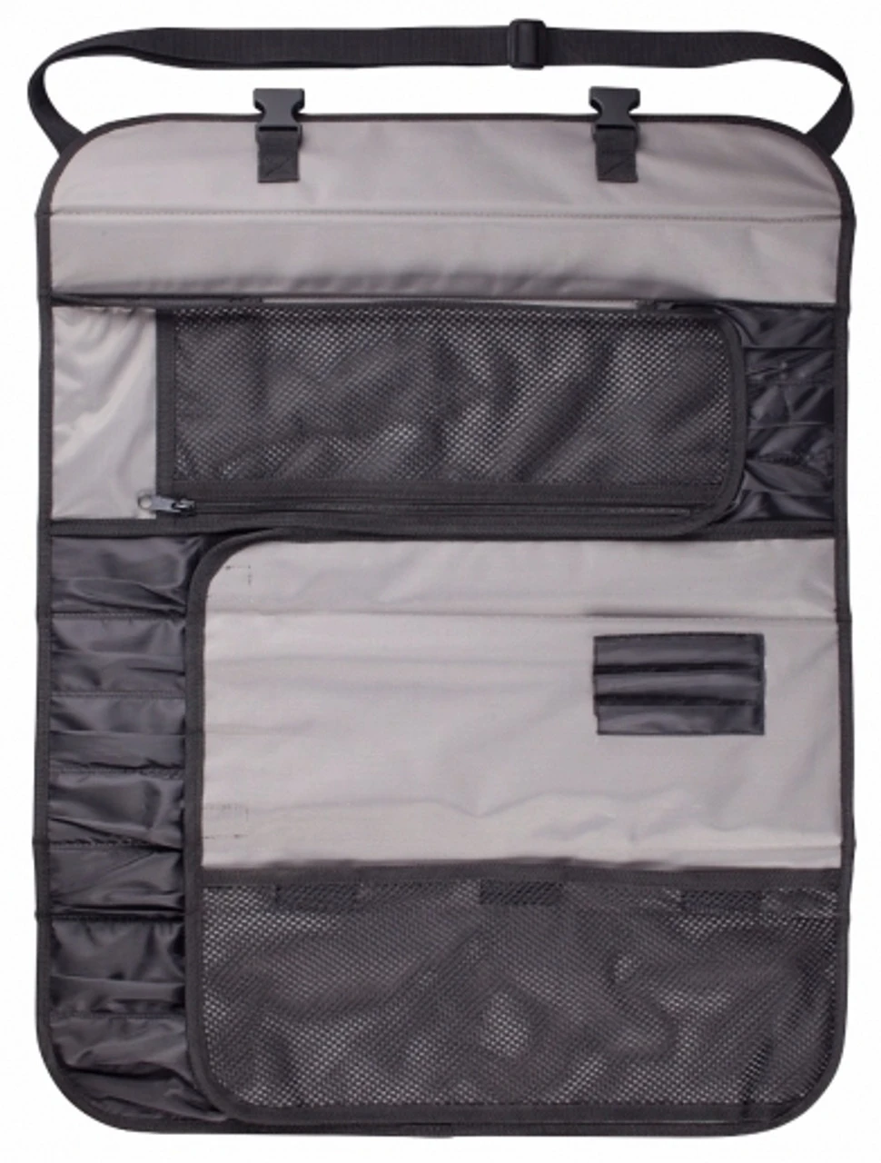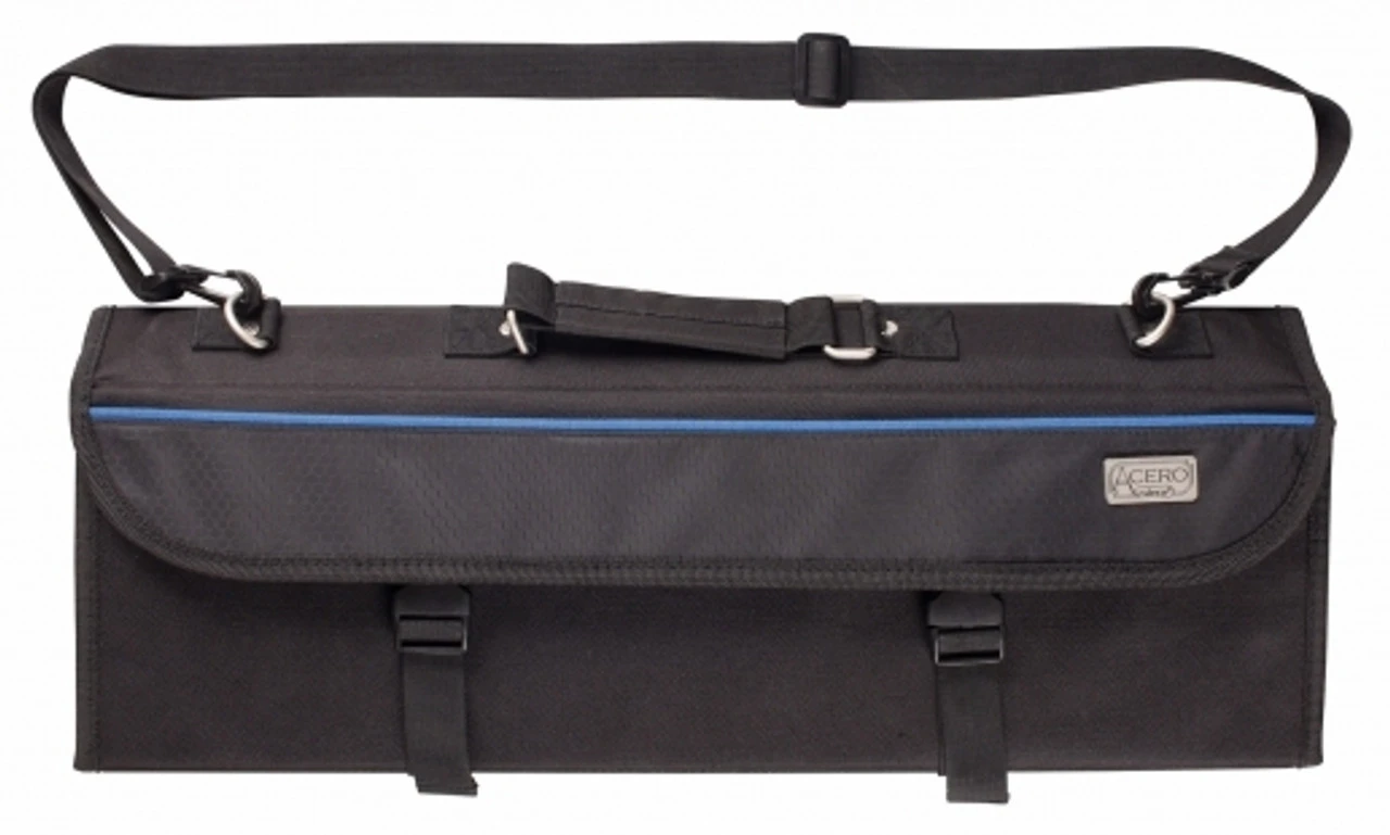 Designed with 11 slots, this black bag provides plenty of space for knives, whisks, carving forks, and more. Preferred by professional chefs, this exceptionally durable polyester knife bag withstands heavy duty use and lays flat when opened for optimal visibility and easy access to your kitchen tools. For convenient transport, this knife bag features a carrying handle and 2 clips for secure closure.