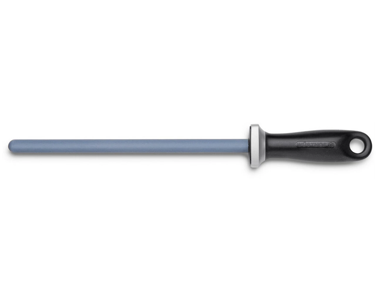 Dull knives can easily be sharpened by using abrasive utensils like a ceramic sharpener or one coated with industrial diamonds. Unlike the honing steel the diamond / ceramic sharpener can actually reshape and restore the edge to its original factory geometry.