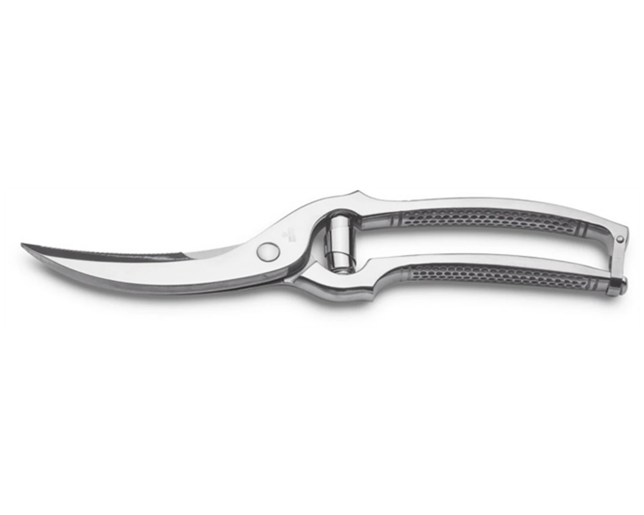 Designed specifically for the challenges of cutting chicken, duck, game hens, and pheasant, these poultry shears from Wüsthof offer excellent control while sparing your standard knives. The shears work for right- or left-handers, with curved handles and curved stainless-steel blades to deliver maximum leverage. A notch pocket in one of the blades lets you securely cut through bones, and the non-slip molded handle creates a secure grip. The blades come with a locking lever for storage and safety between uses. They measure 10 inches long. Washing by hand is recommended.