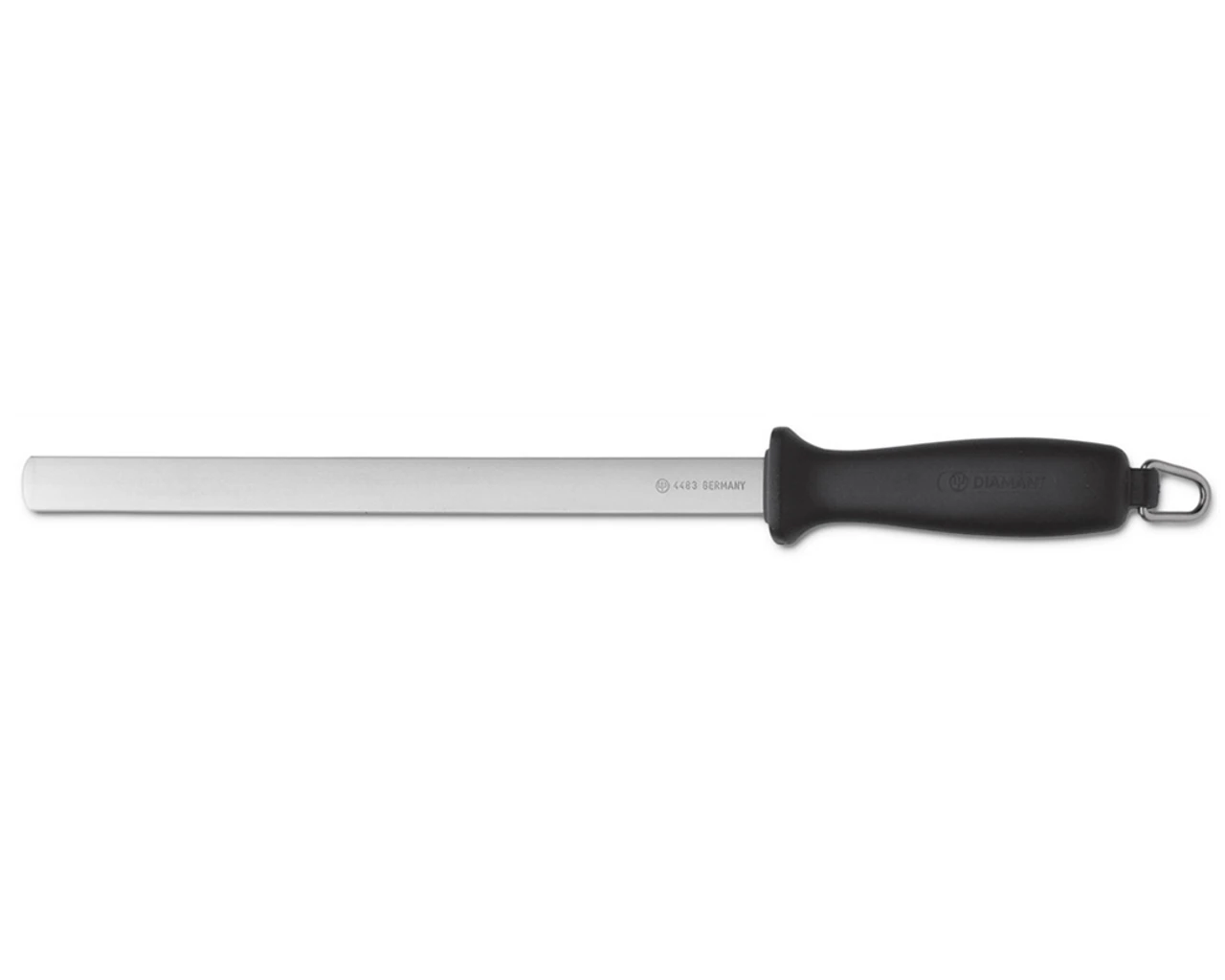 - Dull knives can be easily sharpened with a steel which is coated with industrial diamonds.