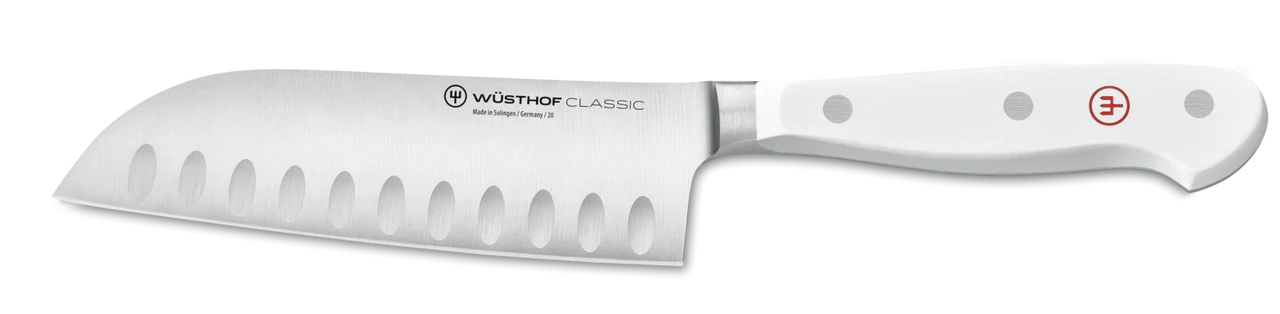 The Classic White Series by Wusthof embraces all the favourite features that foodlovers and professional chefs have come to rely on from the Classic series, butnow with a refined white handle. The White series combines Wusthof’s 200 yearsof experience in the art of forging knives with a modern simplistic design fortimeless knives that offer everything you need for preparing and plating freshfood. The handle now features the red renowned Wüsthof trident embedded inthe handle for a modern take on an old classic. Perfectly balanced, each knife iscomfortable to hold as you prep ingredients for any dish with effortless control.Manufactured entirely in Solingen, Germany.