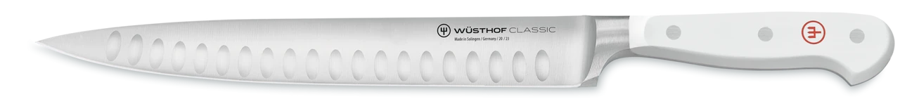 The Classic White Series by Wusthof embraces all the favourite features that foodlovers and professional chefs have come to rely on from the Classic series, butnow with a refined white handle. The White series combines Wusthof’s 200 yearsof experience in the art of forging knives with a modern simplistic design fortimeless knives that offer everything you need for preparing and plating freshfood. The handle now features the red renowned Wüsthof trident embedded inthe handle for a modern take on an old classic. Perfectly balanced, each knife iscomfortable to hold as you prep ingredients for any dish with effortless control.Manufactured entirely in Solingen, Germany.