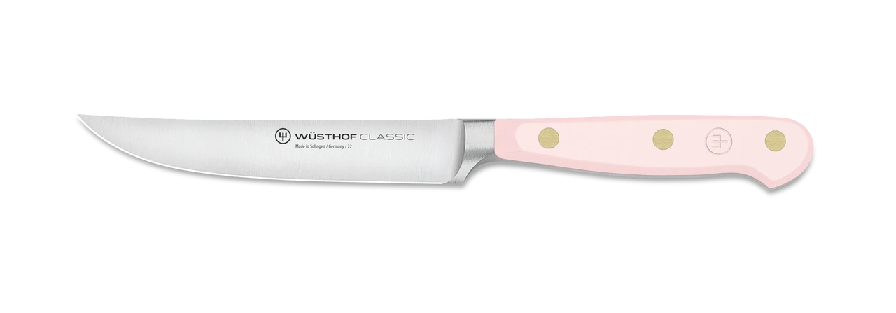 The iconic WUSTHOF Classic 4 1/2″ Steak Knife is, like anything and everything WUSTHOF, forged in a centuries-old global destination for knife artisanship: Solingen, Germany. The extra-sharp blade cuts perfectly through your favourite meat and vegetable dishes and compliments any table setting beautifully. Each Classic steak knife is forged from a single piece of specially tempered, high-carbon steel and precision-sharpened to stay sharp for longer. The elegant, black handle is triple riveted and equipped with a full tang for superior safety and durability.