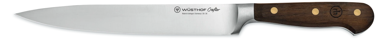 Fine and precise: with its long, narrow blade, the WÜSTHOF Crafter Carving Knife is the specialist at slicing thin cuts of ham, roasted meat, and fish. The long blade and pointed tip offer more control while guiding meat away from bone, but also help transport food from serving dishes to dinner plates.