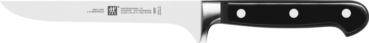 PROFESSIONAL “S” are the classic knives for the professional kitchen. The knives are made of proprietary special formula steel that has been perfected for over 280 years. Combined with ZWILLING’s signature ice-hardening technique, these FRIODUR blades are harder, sharper, they will NOT STAIN or chip and they retain their sharpness longer. Honed and hand-finished by the most skilled artisans, the knives’ laser-controlled edge is incredibly sharp. The sturdy bolster provides the right balance and acts as a finger guard. Precision-forged from a single piece of solid steel, these threerivet handle knives deliver optimum balance and safe handling. Professional chefs worldwide trust the tradition and quality of these impressive knives.