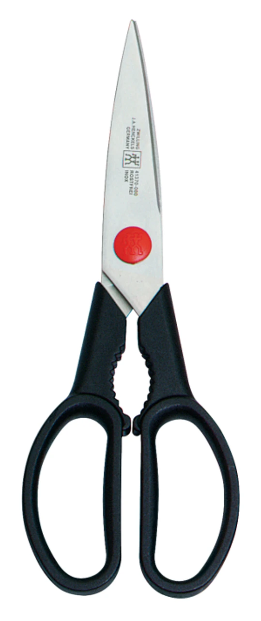 These 20.5 cm TWIN® L multi-purpose scissors can be used to cut a wide variety of materials, including paper, thick cardboard, fabric and carpet. The integrated screw top opener in the handle is also helpful when opening tight screw tops. The scissors are made from high-quality special formula steel and feature a smooth, sharp cutting edge that enables them to cut with precision. The handle, which is made from reinforced plastic, is lightweight and comfortable to hold while cutting. These TWIN® L multi-purpose scissors will make a versatile addition to your existing collection of kitchenware.