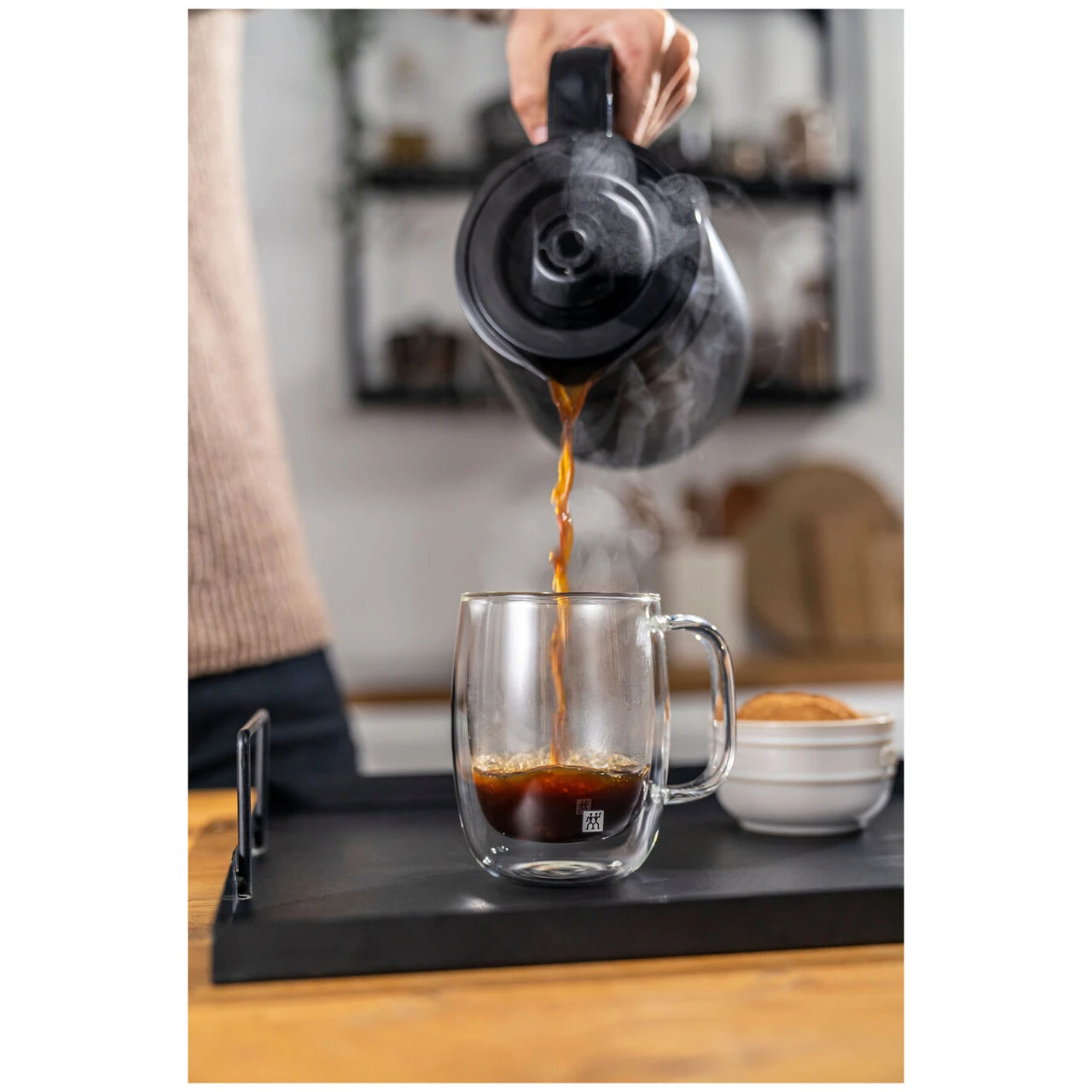 The ZWILLING ENFINIGY Thermal Carafe keeps coffee hot for hours, without burning it, so you can enjoy pure coffee flavor any time of the day. The thermal carafe’s double-walled, stainless-steel body maintains the temperature of your beverage, while the outside remains comfortably cool to the touch.