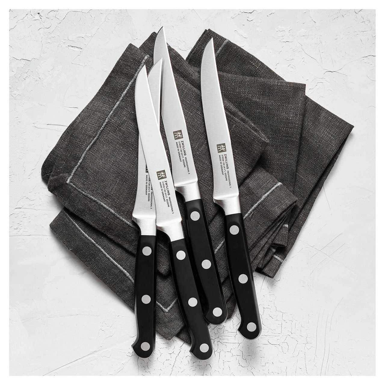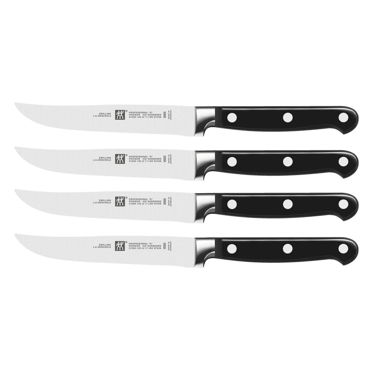 PROFESSIONAL “S” are the classic knives for the professional kitchen. The knives are made of proprietary special formula steel that has been perfected for over 285 years. Combined with ZWILLING’s signature ice-hardening technique, these FRIODUR blades are harder, sharper, they will NOT STAIN or chip and they retain their sharpness longer. Honed and hand-finished by the most skilled artisans, the knives’ laser-controlled edge is incredibly sharp. The sturdy bolster provides the right balance and acts as a finger guard. Precision-forged from a single piece of solid steel, these three rivet handle knives deliver optimum balance and safe handling. Professional Chef’s worldwide trust the tradition and quality of these impressive knives.